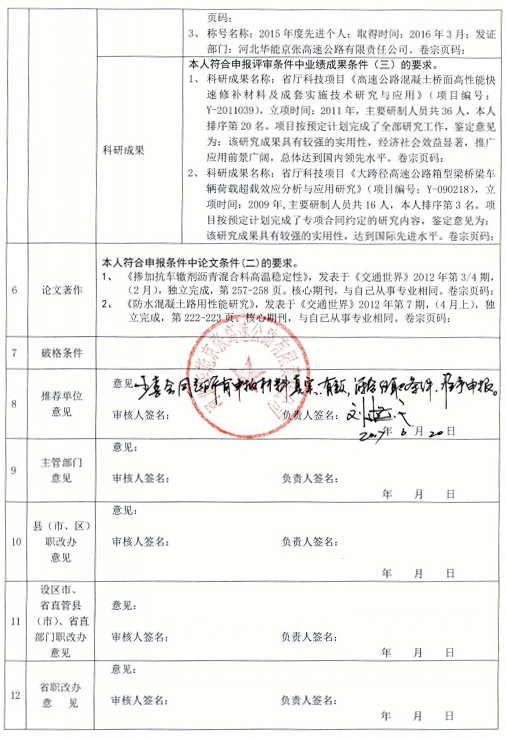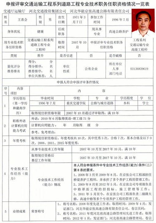 京張公司2017年度專業技術職稱申報公示(王喜會)